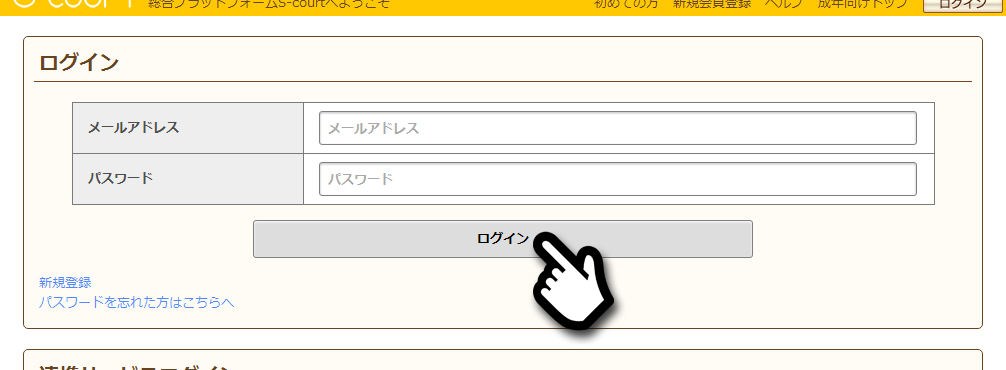 カスタムオーダーメイド3D2ショップにログインしていない場合は、ログインページへ移動しS-courtアカウントでログインを行います。